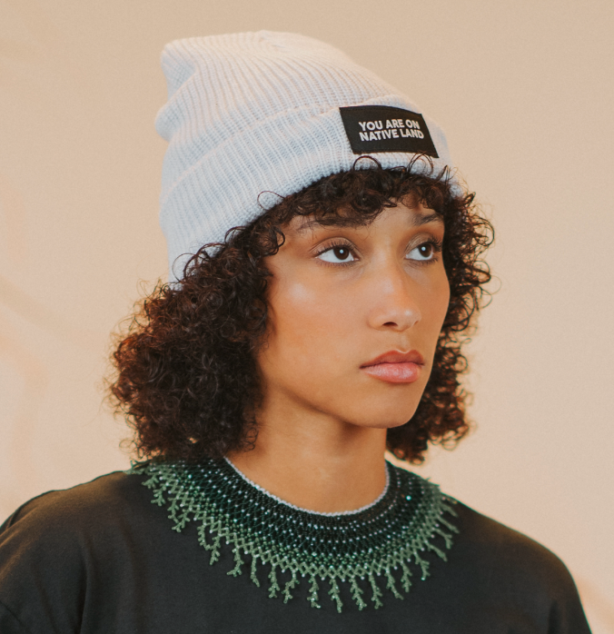 'YOU ARE ON NATIVE LAND' RIBBED BEANIE